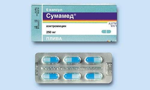Азитромицин – название антибиотика, который входит в состав Сумамеда и является именно тем веществом, которое лечит.