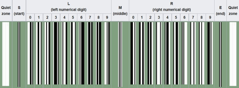 Кодирование алфавитно-цифровых символов осуществляется при помощи светлых и темных полос различной ширины, чередующихся друг с другом, – штрихов и пробелов. Единицей ширины штриха является утвержденный модуль – 0,33 мм (самый узкий штрих или пробел). Семь модулей, сгруппированные в два штриха и два пробела, кодируют одну цифру штрих-кода. Ширина каждого из них может составлять от одного до максимум трех модулей. Например: цифра “4” будет выглядеть как последовательность вида “1011100”. Аналогичным образом представлен каждый символ кода. О чем же говорят эти цифры?