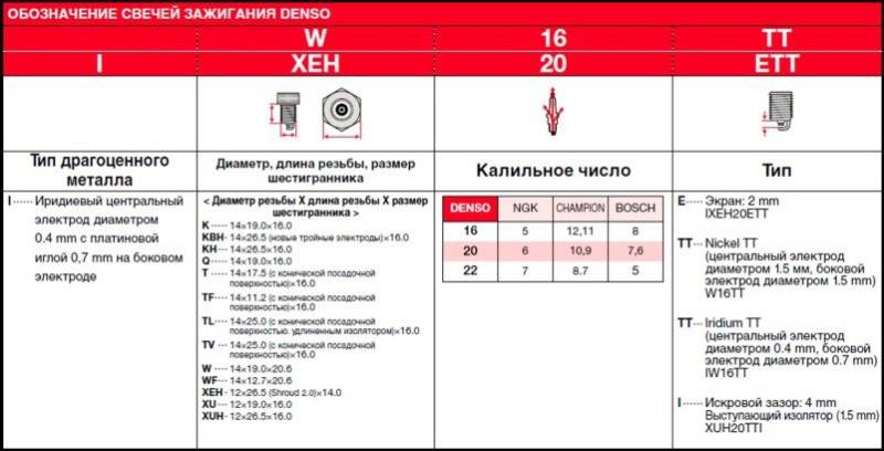 Перед покупкой стоит ознакомиться с системой обозначений оригинальных свечей Denso. Она выглядит следующим образом: