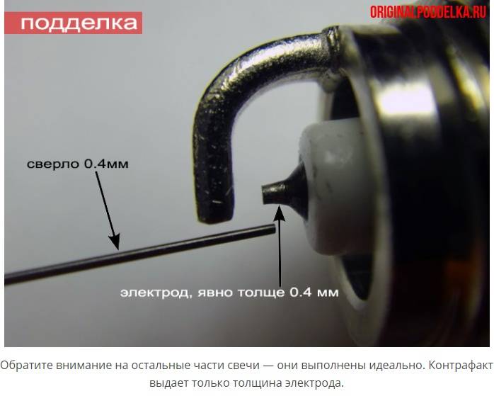 Причем на достаточно качественно выполненных подделках это порой единственный метод выявить контрафакт, поскольку все остальные элементы свечки выполнены идентично оригиналу.