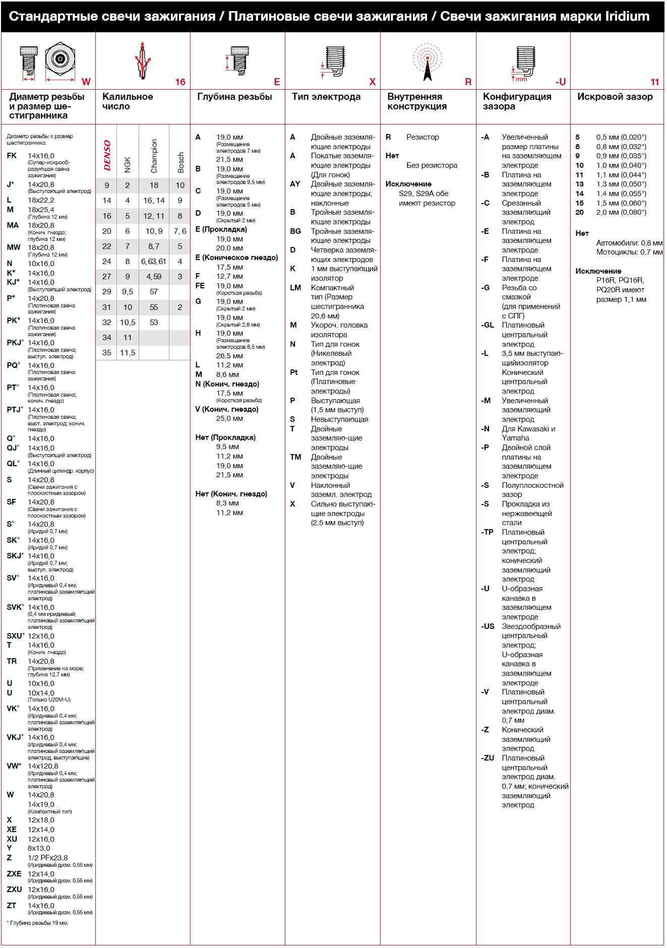 Типы высокоэффективных иридиевых свечей Денсо: