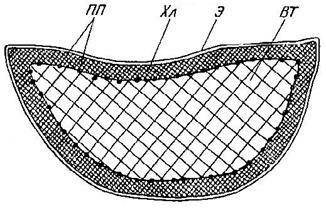 ПП-проводящие пучки; Хл – хлорофилоносная ткань; Э – эпителий; ВТ – водоносная ткань