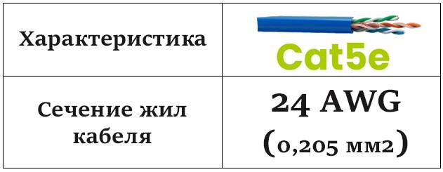 Для слаботочного кабеля 5е он составляет 24AWG.