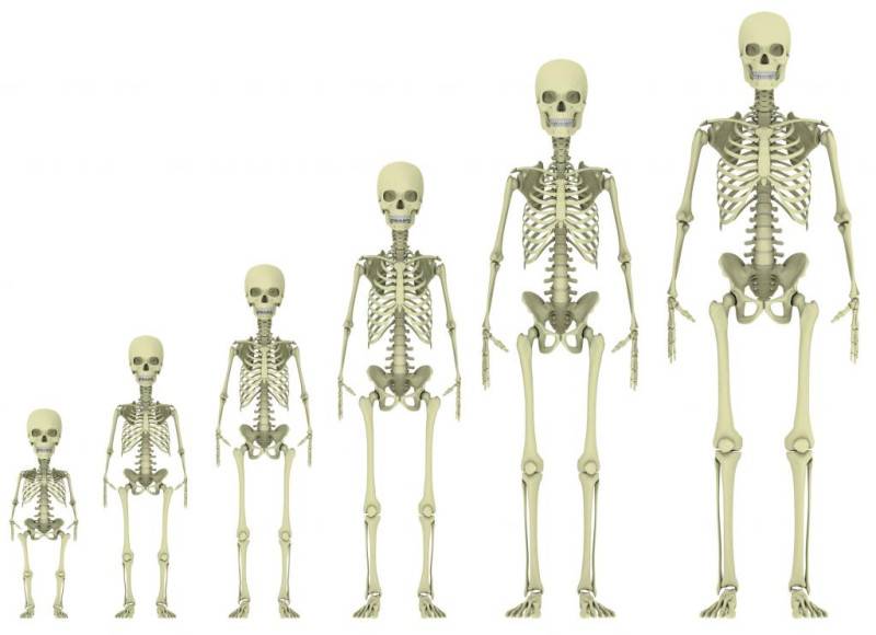 В утробном периоде скелет ребенка состоит из хрящевой ткани с редкими очагами окостенения. Сразу после рождения процесс укрепления становится заметнее. По степени окостенения скелета можно судить о возрасте ребенка. Химический состав и строение костей претерпевают изменения. Они теряют эластичность и увеличиваются в размерах. В костях ребенка гораздо больше губчатого вещества, чем в костях взрослого человека. Чем старше организм, тем более хрупкими и ломкими становятся его кости.