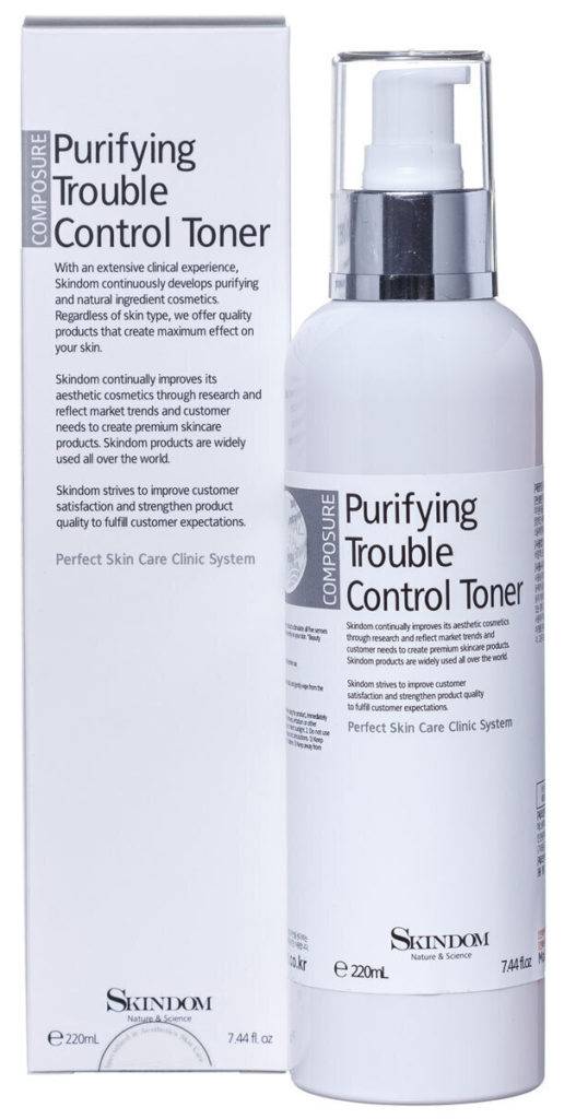 SKINDOM — популярный корейский бренд, продукцией которого пользуются не только в стране производителя, но и на территории России. Purifying Trouble Control Toner разработан для борьбы с высыпаниями, покраснениями и прыщами. Ромашка, входящая в состав, обладает подсушивающим эффектом, аллантоин, кора белой айвы, гамамелис и алоэ вера оказывают антибактериальное воздействие на эпидермис. После нанесения препарат не надо смывать, подходит для использования перед сном или до нанесения макияжа.