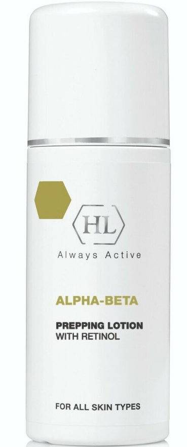 Alpha-Beta and Retinol Prepping Lotion — профессиональный тоник от израильского производителя Holy Land. В основе препарата лежат натуральные кислоты и растительные экстракты, которые способствуют очищению пор, выравниванию цвета кожи и разглаживанию мелких морщин. Обладает легким эффектом пилинга, что способствует очищению от ороговевших частиц и улучшению обмена веществ.