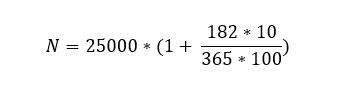 Например, вексель был продан за 25 тысяч рублей. а процентная ставка установлена на 15% годовых. Период действия векселя – 182 дня. Следовательно, когда этот срок истечет, то номинал бумаги составит: