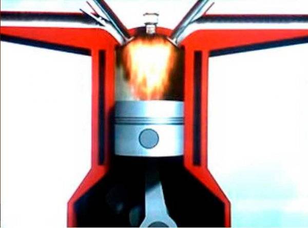 При воспламенении смеси выделяется энергия, которая воздействует на поршень, заставляя его двигаться вниз, при этом выделенная от сгорания энергия передается поршнем на коленвал посредством шатуна.