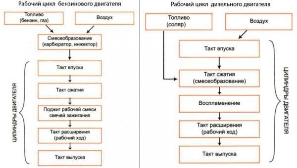 У каждого из этих двигателей цикл производится по-разному, что влияет на их конструкцию и многие другие параметры и характеристики.