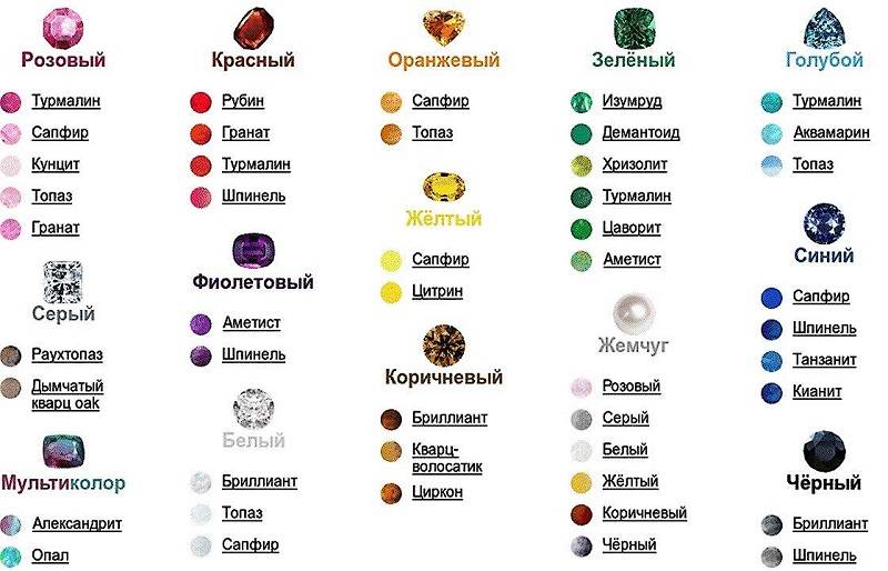Если же говорить о классификации драгоценных камней, можно выделить объекты некоторых цветов: