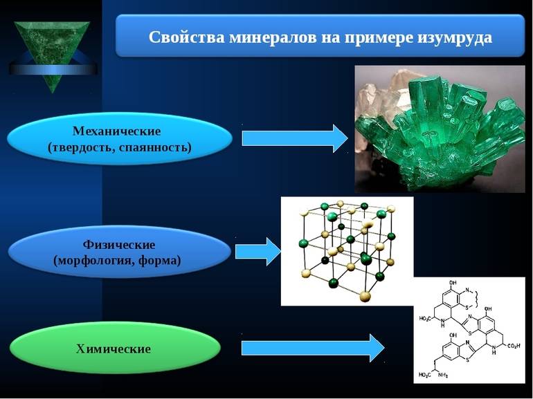 Все минералы обладают своими химическими и физическими свойствами. Об этом стоит рассказать в докладе про горные породы и их элементы. К физическим свойствам относят хрупкость, колкость, ломкость и гибкость. Один из самых важных показателей для минералов — это твердость. Самым мягким считается тальк, а наиболее прочным — алмаз.