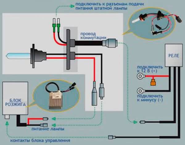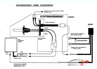 Согласно схеме подключения комплекта биксенона с индивидуальным реле, методика проведения операции такова: