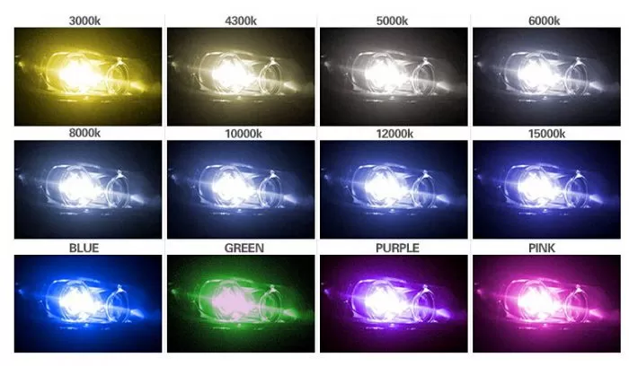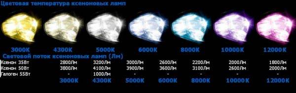 Ксеноновые и биксеноновые лампы отличаются по показателю цветовой температуры. По сравнению с галогенками эта величина у ксеноновых моделей больше. Например, диапазон цветовой температуры галогеновых приборов составляет 3000-3200 К. В источниках света с ксеноном этот параметр достигает пределов 4300-5000 К.