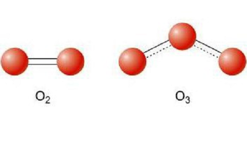 Рассмотрим на примере молекул веществ, которые образованные атомами кислорода, это кислород и озон. Обе эти молекулы образованы атомами химического элемента Кислород, но в состав озона, химическая формула которого О3, входит 3 атома Кислорода, а в молекулу кислорода, формула вещества О2 – два атома химического элемента Кислород.