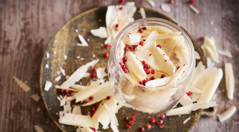 - Белый — придётся по вкусу любителям гастрономических экспериментов. Приготовить его можно в домашних условиях из 100-граммовой плитки белого шоколада, по желанию дополнив молочными продуктами и пряностями.