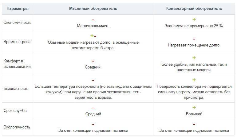 Теперь попробуем разобраться, какой обогреватель лучше, масляный или конвекторный. Сделать это можно, сравнив такие показатели отличия как: