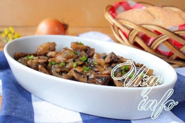 Вот такой это простой и быстрый рецепт жареных шампиньонов с луком. Остается придумать, с каким гарниром вы подадите это блюдо.