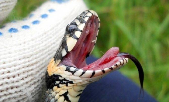 Для того чтобы снять агрессора с руки нужно впрыснуть ему в рот спирт или водку. Этанол не причинит вреда, но резкий запах и жжение заставляют змею разжать челюсти.