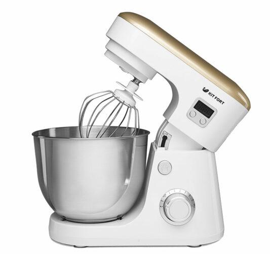 Отечественный производитель радует потребителей хорошей ценой на планетарные миксеры. Это бюджетное приобретение для начинающих кулинаров. Kitfort КТ-1308 предназначен для продуктивной домашней работы. Он имеет ряд функциональных преимуществ: