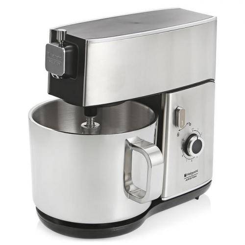 Hotpoint-Ariston KM 040 AX0 – многофункциональный миксер, а его обладатели отмечают высокую надежность прибора. Емкость чаши составила 5 литров. Корпус же изготовлен из металла, имеет прорезиненные ножки, благодаря которым модель не скользит по поверхности.