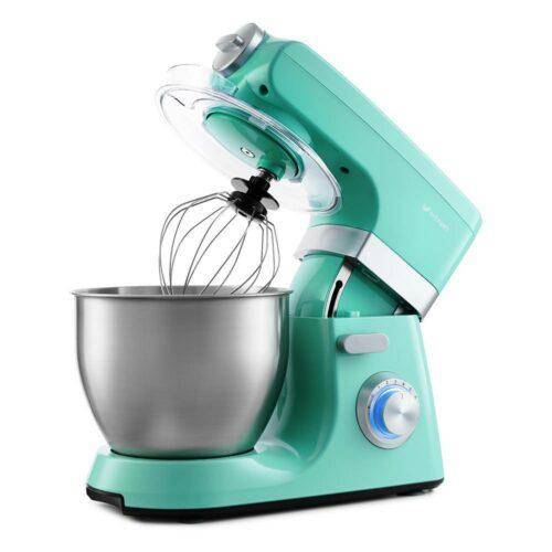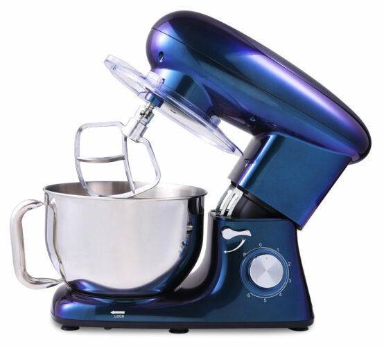 Планетарный миксер с высокой производительностью. Встроенный мотор предусматривает мощность 1200 Вт. Устройство весит 6,8 кг, имеет прорезиненные ножки. Чаша, венчик для взбивания, перемешивающая лопатка, а также крюк для теста сделаны из нержавеющей стали. Это позволяет работать с любыми температурами от горячего теста до ледяного коктейля.
