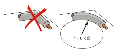 Радиус изгиба витой пары, должен быть не меньше 8 диаметров кабеля