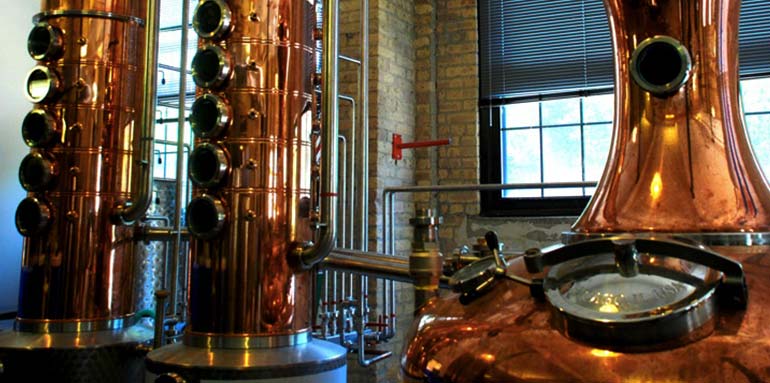 При дистилляции виски используются медные перегонные кубы. Бурбон же производят в основном в ректификационных колоннах непрерывного цикла. Спирты при этом получаются менее насыщенными вкусом и ароматами, но более чистые.
