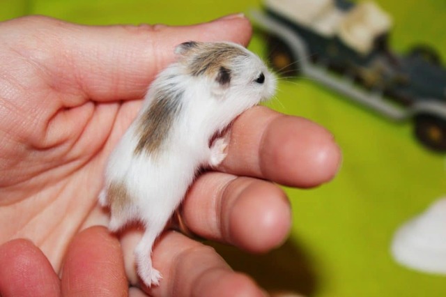 Чтобы определить пол джунгарского хомячка, нужно поставить его на левую ладонь, взяться двумя пальцами правой руки за складку кожи в межлопаточной области.Потом его следует аккуратно приподнять, чтобы тело оказалось в вытянутой позиции. Тогда можно без проблем рассмотреть гениталии зверька.