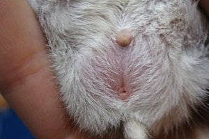 - Наличие небольших припухлостей под хвостиком грызуна.