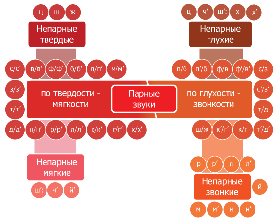 Пары по глухости-звонкости: и , и , и , и , и , и , и , и , и , и , и .