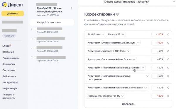 Настройка рекламы на определенную аудиторию в Яндекс Директе.