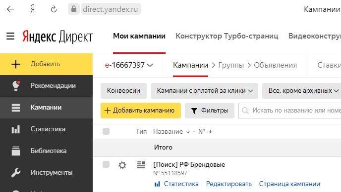 Для создания новой рекламной кампании, нажимайте желтую кнопку «Добавить»: