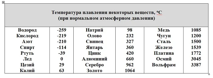 По таблице свободно находится ответ на классический вопрос: можно ли расплавить в серебряной ложке медь и олово? Олово – можно, его температура плавления, 232 градуса, меньше, чем у серебра. Медь расплавить нельзя. Серебро расплавится раньше, чем медь. У серебра температура плавления 962 градуса, а у меди – 1085о С.