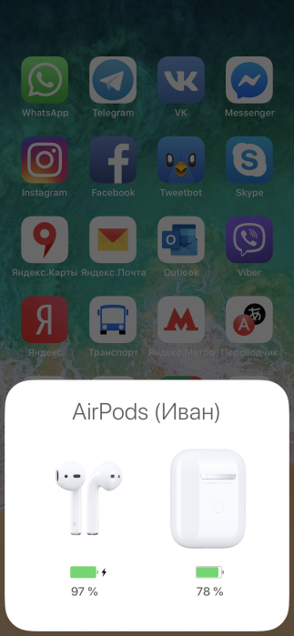 Для настройки AirPods 2 на iPhone или любом другом iOS или Mac OS устройстве необходимо включить Bluetooth в настройках. После этого iPhone автоматически подключится к наушникам и покажет, сколько процентов заряда осталось в самом кейсе, а сколько непосредственно в самих наушниках. Это очень удобно: вы всегда сможете узнать, когда именно нужно поставить AirPods на зарядку.