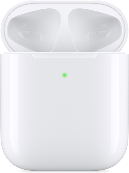 Apple AirPods 2 charging case with wireless charging. LED on the front.