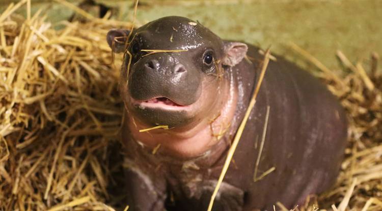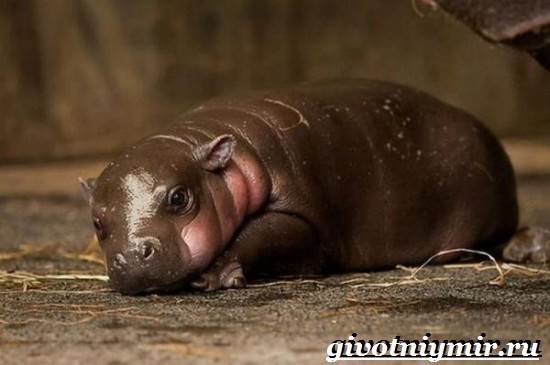 На фото детеныш бегемота