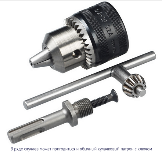 Чем же еще отличается ударная дрель и перфоратор? Разница в том, что дрель позволяет использовать обычные сверла без лишних приспособлений, а для этой цели с перфоратором нужны дополнительные переходники. Они делают инструмент неудобным в работе, т.е. увеличивают его длину.