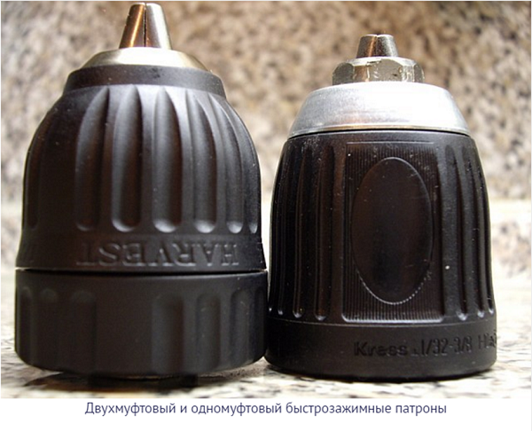 зажимной патрон шуруповерта предназначен для шестигранного хвостовика, а быстрозажимной патрон дрели для круглого;