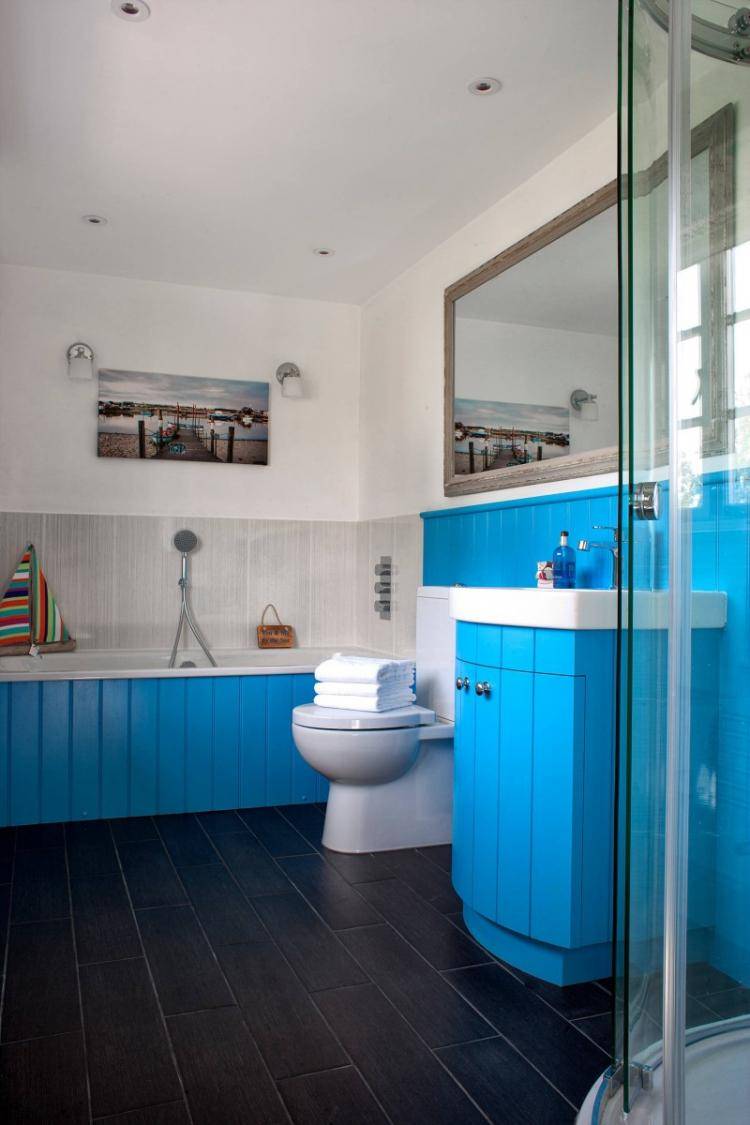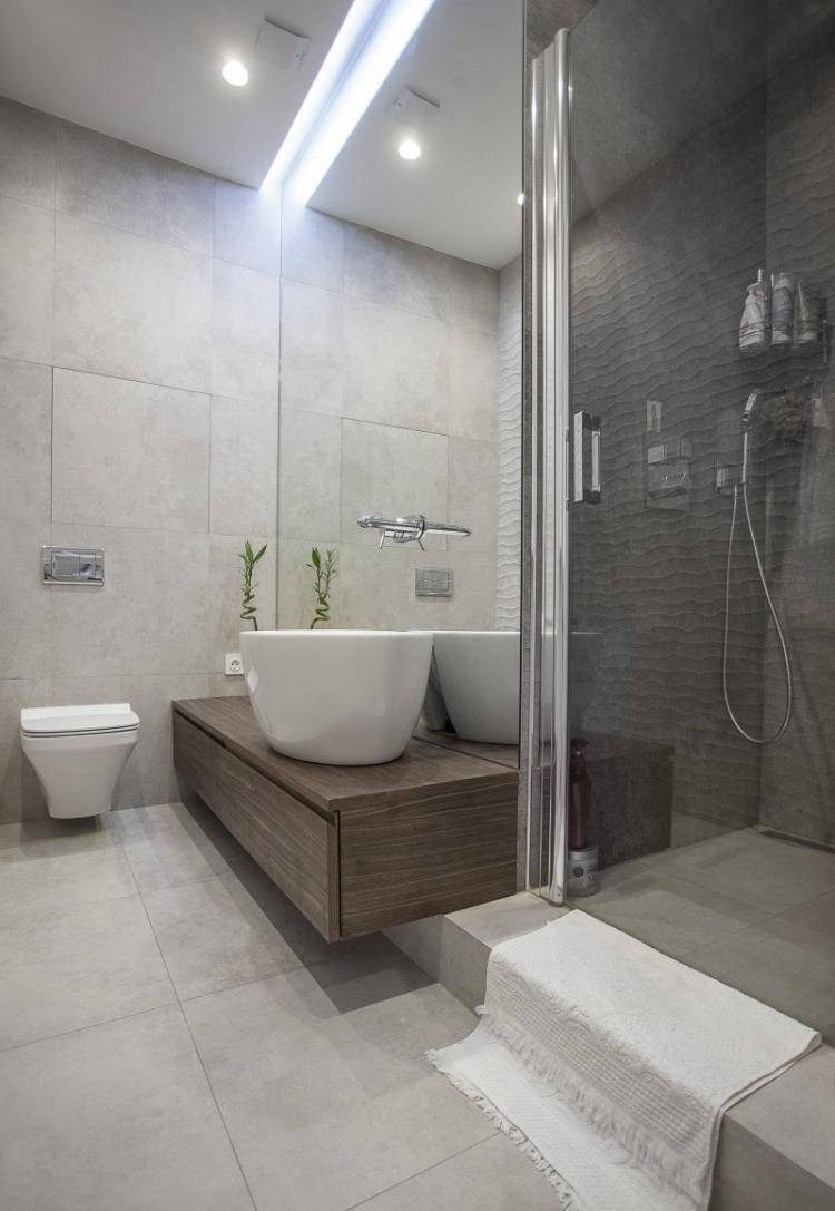 Традиционно в санузлах используется плитка, но современные тренды позволяют уверенно выйти за рамки. Натуральное дерево быстро придет в негодность во влажной ванной комнате с постоянными температурными колебаниями. А вот неприхотливые и недорогие МДФ панели выглядят ничуть не хуже, а прослужат дольше.