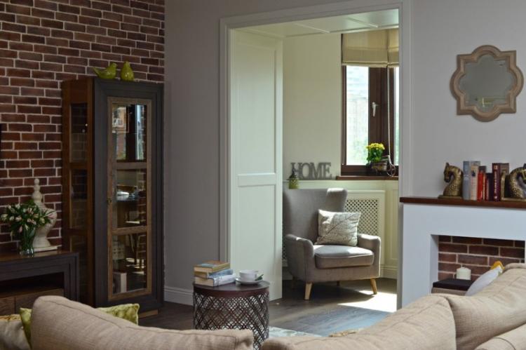 Акцентная стена или угол в гостиной – частый прием для обозначения зоны отдыха или рабочей зоны. МДФ – сравнительное недорогой и практичный материал, который уж точно обойдется дешевле обшивки из натурального дерева. А в частном доме или на даче можешь обшить панелями все стены – и получишь неповторимую атмосферу тепла и уюта.