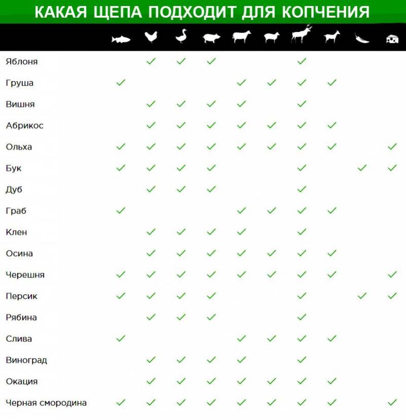 Таблица — сколько времени и при какой температуре коптить разные продукты
