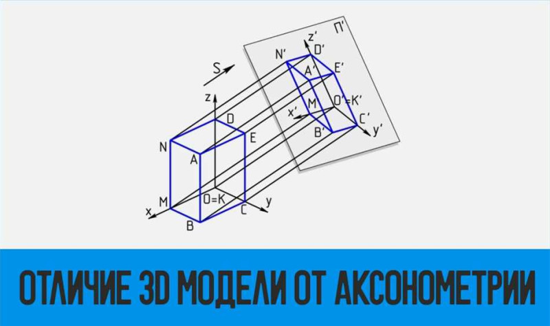 Аксонометрическая проекция — это изображение, полученное при параллельном проецировании предмета вместе с осями прямоугольных координат на произвольную плоскость.