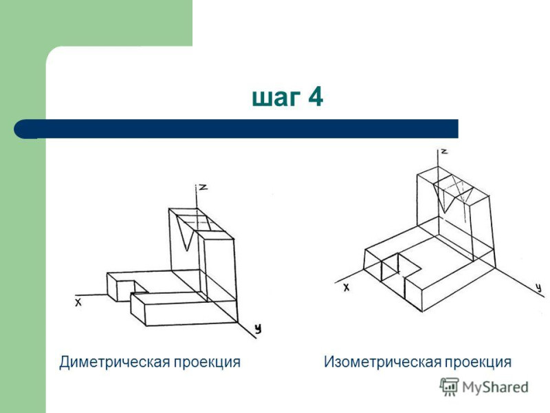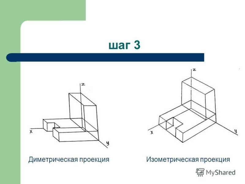 шаг 3 Диметрическая проекция Изометрическая проекция