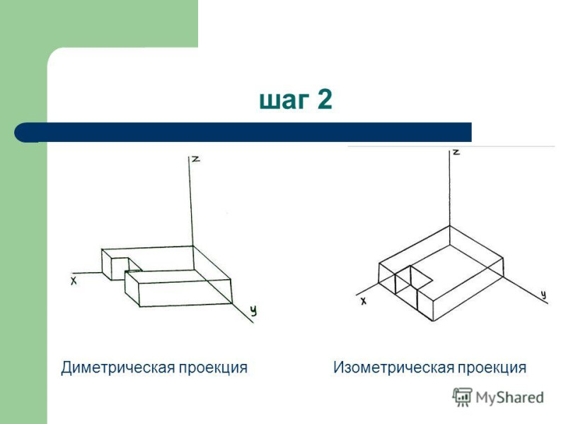 шаг 2 Диметрическая проекция Изометрическая проекция