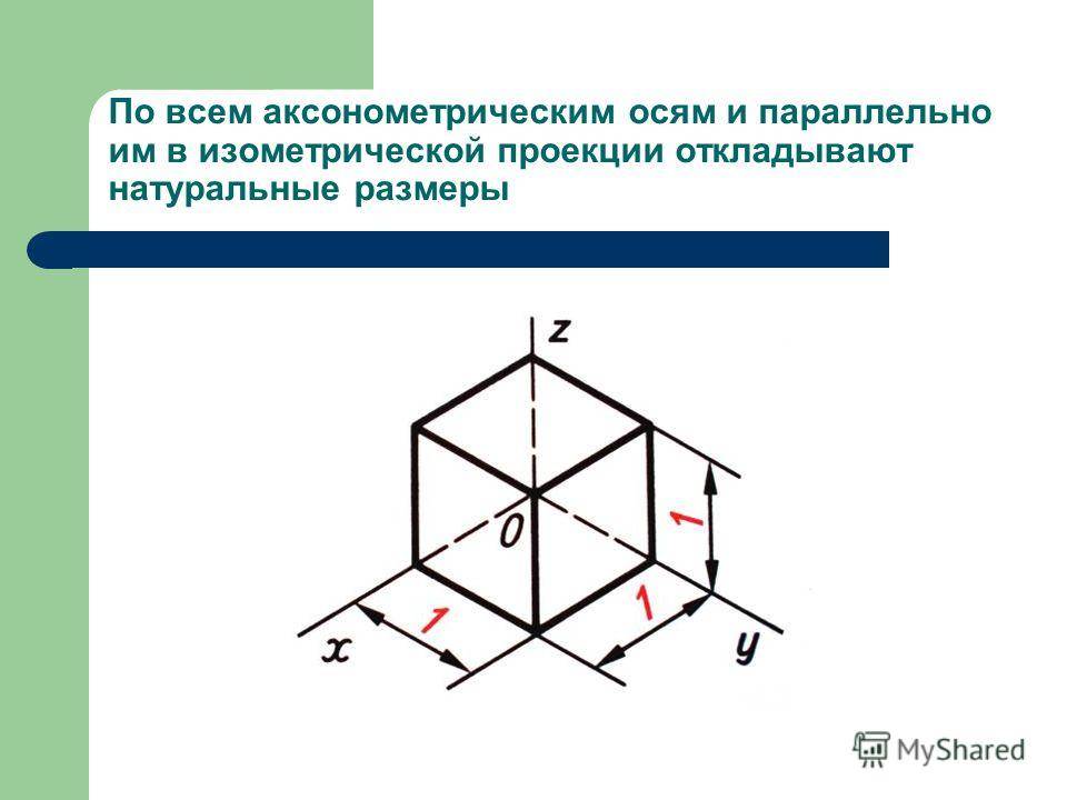 При построении аксонометрических проекций размеры откладывают вдоль осей х, у, z.