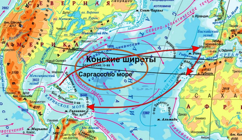 Саргассово море окружено подводными течениями