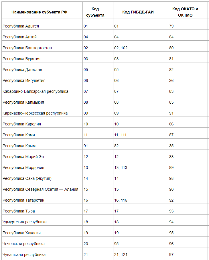 Что такое коды субъектов РФ и где их найти