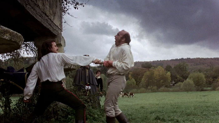 Фехтование в фильме скоростное, хорошо поставленное, порой даже чересчур быстрое, не всегда успеваешь сразу понять, что случилось. Актеры и постановщики проделали отличную работу.