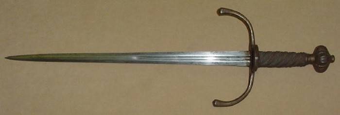 - Короткая рукоять предусматривала расположение пальцев поверх крестовины.