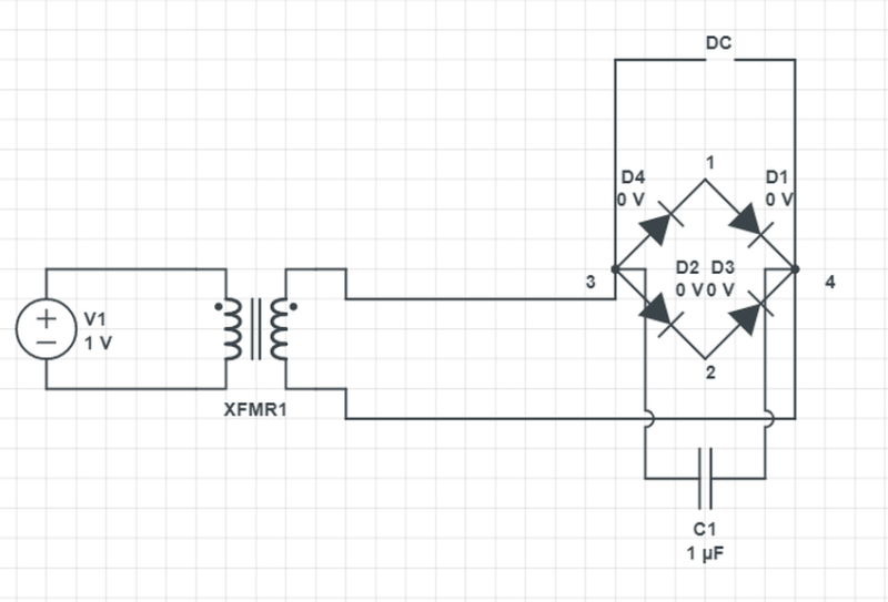 Давайте посмотрим, как использовать эти компоненты в цепи, чтобы получить выход постоянного тока от источника переменного тока.